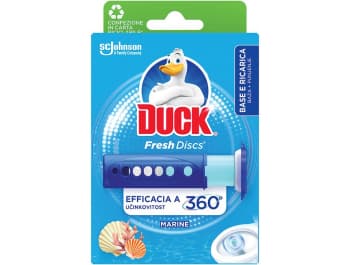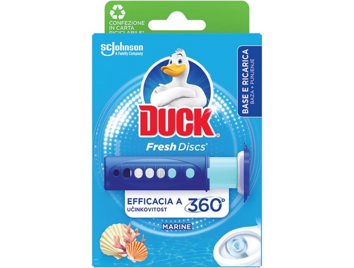 Duck Fresh Discs gelový osvěžovač záchodové mísy, který poskytuje dlouhotrvající svěžest a čistotu - bez nutnosti klasických plastových držáků. Osvěžující vůně oceánu vydrží až 7,5 týdne a ochrání vaši toaletní mísu před nepříjemnými pachy a nečistotami. Balení obsahuje základnu a 6 gelových disků.