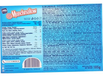 Kakaová zálivka 37 % (cukr, plně ztužený rostlinný tuk (palmový olej), kakaový prášek se sníženým obsahem tuku (21 %), emulgátory: SÓJOVÝ lecitin, E476 a E492), cukr, PŠENIČNÁ mouka, glukózový sirup, palmový olej, zvlhčovadlo: sorbitol , želatina, kakaový prášek se sníženým obsahem tuku, sušený vaječný bílek, sůl, kypřidlo: hydrogenuhličitan sodný, hydrogenuhličitan amonný, konzervant: sorban draselný a aroma.