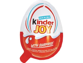 Mléčná čokoláda Kinder joy. Křupavá kakaová specialita s mléčným krémem a kakaovo-oříškovým krémem a hračkou překvapení.
