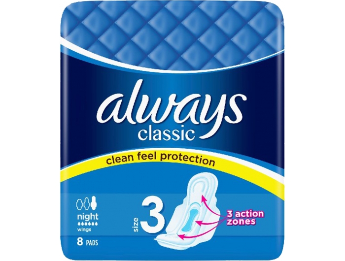 Hygienic pads with wings, 3 active absorption zones, reliable all-night protection, neutralization of unpleasant odors, feeling of cleanliness and freshness.