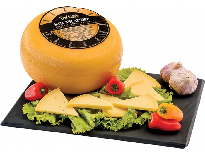 Semi-hard fatty cheese made from cow's milk . It is characterized by a mild taste that will fit into any cheese plate. Enjoy Trappist with olives, grapes, dried fruits and nuts, a perfect combination for warm summer evenings. It will easily match with different wines - from light rosé and white wines to stronger reds.
