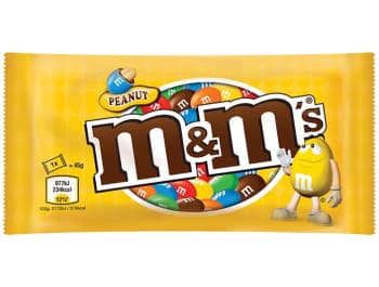 sugar, PEANUTS, cocoa mass, skimmed MILK powder, MILK SUGAR and MILK proteins, cocoa butter, palm fat, MILK fat, starch, glucose syrup, Shea butter, MILK SUGAR, emulsifier (soy lecithin), stabilizer (gum arabic), dyes (E100, E120, E133, E160a, E160e, E171), dextrin, polishing agent (carnauba wax), palm oil, salt, aromas. May contain HAZELNUT and ALMOND. MILK chocolate: cocoa parts 25% min.