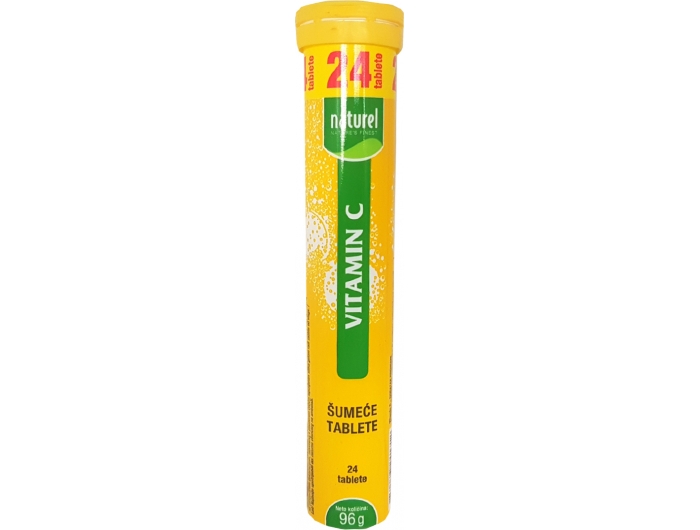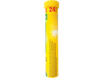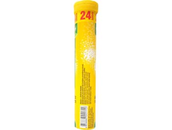 Lemon-flavored effervescent tablets with added vitamin C, sugar and sweeteners.