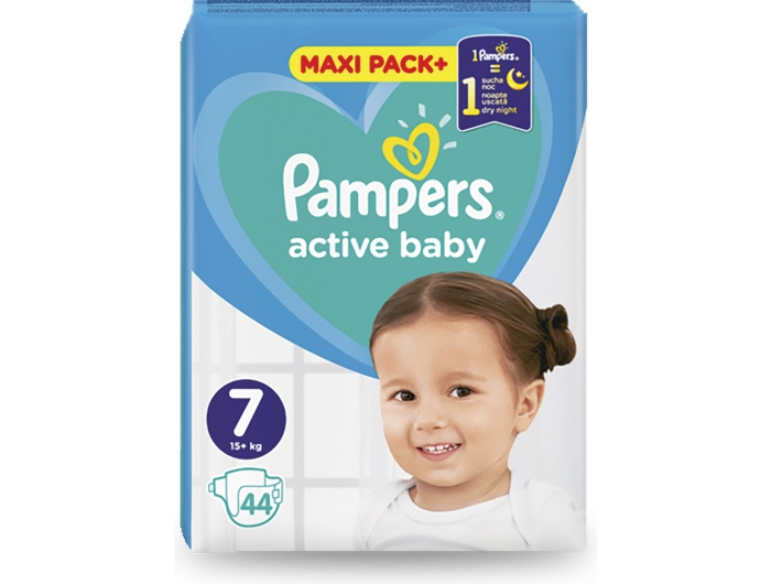 Maxi KOMiranje +. For very big babies. 1 Pampers diaper=1 dry night. It provides an experience of freshness.