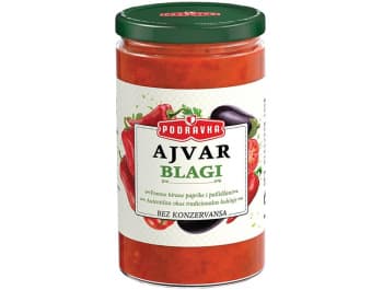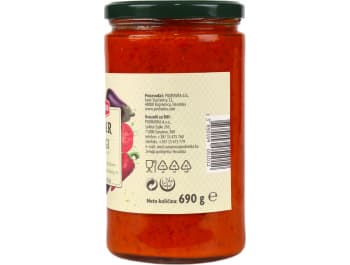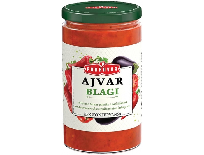 Mild ajvar with vegetables. Carefully selected peppers and eggplants. Authentic taste of traditional cuisine.