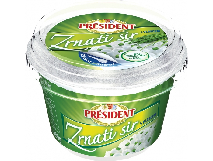 Grain cheese - a light and tasty meal. President fresh cheeses are made from the best quality fresh cow's milk. President Grain cheese due to its low fat content, extremely suitable for dietary nutrition, as well as for the nutrition of children in development because it is a quality source of protein. Fresh grain cheese with chives · min. 20% fat in dry matter.