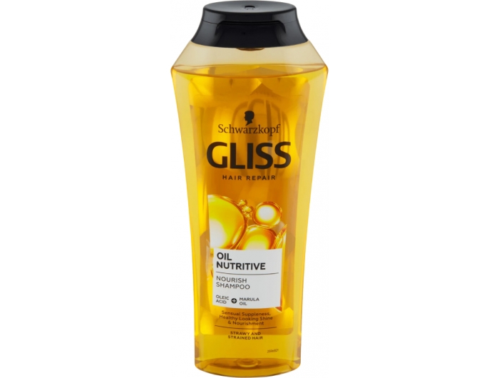 Gliss Oil Nutritive shampoo with oleic acid and marula seed oil for straw and stressed hair. Provides intensive renewal and care. For sensual suppleness and a healthy-looking glow.