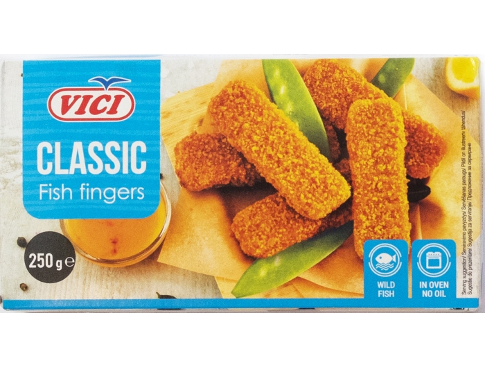 Breaded fish sticks - quick-frozen pre-fried breaded shaped product from a piece of fish.