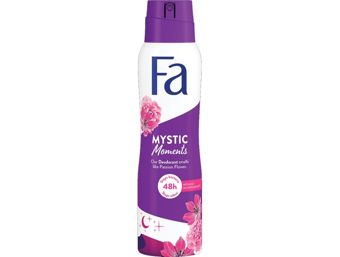 Fa Mystic Moments profumata avventura per il giorno come da una fiaba! Lo spray deodorante fornisce una protezione affidabile contro gli odori sgradevoli e garantisce una freschezza duratura. Grazie alla formula innovativa, ti protegge in modo affidabile fino a 48 ore e non lascia segni bianchi. Goditi il meraviglioso profumo della passiflora e sentiti bene nella tua pelle con il deodorante spray Fa Mystic Moments.