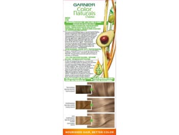 La tintura per capelli Color Naturals fornisce un colore unico. Il colore è profondo e duraturo, mentre copre i grigi fino al 100%. Si caratterizza per il fatto che contiene 3 oli nutrienti (oliva, avocado e karité), dona ai capelli una sensazione setosa e lucentezza e nutre i capelli durante la colorazione (ora con il 20% in più di balsamo).