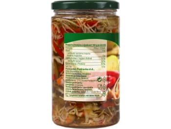 Questa insalata preferita è composta da cetrioli, cipolle, carote, cavoli e peperoni secondo una ricetta fatta in casa. Si abbina a piatti alla griglia, piatti di carne e stufati, soprattutto nel periodo invernale.