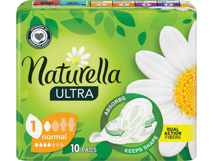 Gli assorbenti con ali Naturella Ultra Normal ora hanno un nucleo assorbente più potente, sono altrettanto morbidi e curano la pelle delle parti intime del corpo come prima. Sono l'unico prodotto per l'igiene femminile che contiene Dermacrem, una lozione secca che ha dimostrato di prevenire le irritazioni della pelle. Gli assorbenti Naturella Ultra sono sottili e hanno un nucleo assorbente più potente che attira il liquido e lo allontana dalla pelle, così ti senti asciutto e comodo.