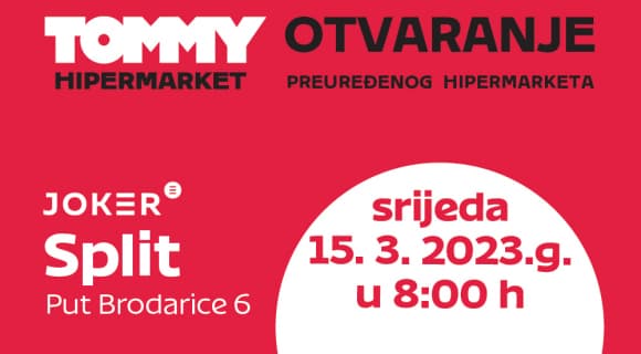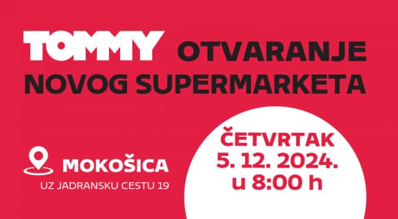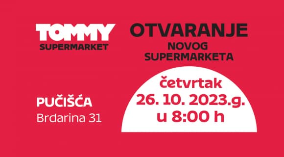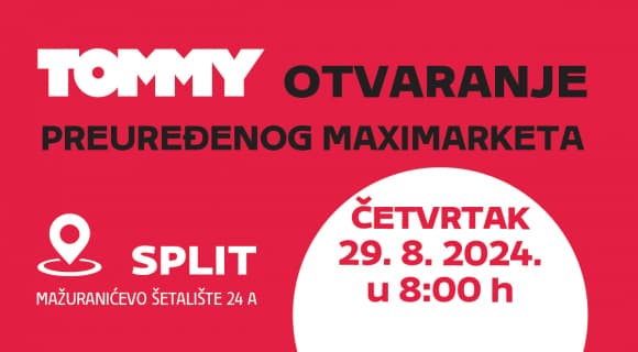 Otvaranje prodavaonicaOtvaranje preuređenog Tommy hipermarketa u Drnišu11. 12. 2025. Tommy hipermarket u Drnišu otvara svoja vrata!Detaljnije