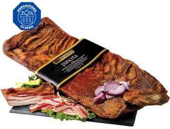 Wyprodukowany z mięsa wieprzowego królewskiego (boczek wieprzowy bez żeberek). Na przekroju jest koloru czerwonego, usianego tkanką tłuszczową. Posiada charakterystyczny łagodny, delikatny i przyjemny zapach dymu. Ze względu na zaakcentowaną nutę dymu i lekko słony aromat dobrze komponuje się z lokalnymi dalmatyńskimi serami, ze świeżymi warzywami, ale jest też doskonałym dodatkiem do licznych specjałów z owoców morza.