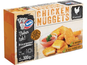 Nuggetsy z kurczaka - uformowany, panierowany, podsmażony i głęboko mrożony produkt z mięsa z piersi kurczaka.