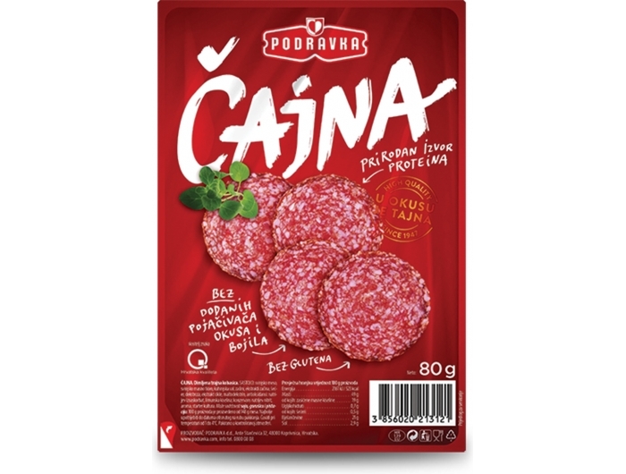 Svinjsko meso, svinjsko masno tkivo, kuhinjska sol, začini, ekstrakti začina, šećer, dekstroza, ekstrakt cikle, maltodekstrin, antioksidansi; E316, E330, konzervans; E250, aroma, starter kultura.