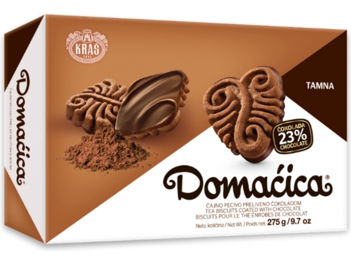 Obiteljski dom je nezamisliv bez Domaćice, prhkog, čajnog peciva s 23% Kraševe čokolade. Okus: tamna čokolada.