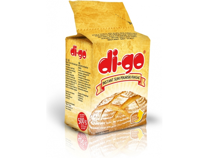 Di-go instant suhi pekarski kvasac proizvodi se iz posebno selektiranog soja kvasca. U obliku je granula koje se jednostavno doziraju u brašno. Pekarskim proizvodima daje rahlo tijesto, punoću okusa i ugodnu aromu. Pakiranje od 500 g dovoljno je za 25 do 50 kg brašna