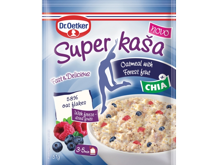 Započnite dan sa Dr. Oetker Super kašom! Ukusna zobena kaša sa ukusnom voćem i chia sjemenkama nutritivno je bogat obrok, a uz to spreman za samo nekoliko trenutaka.