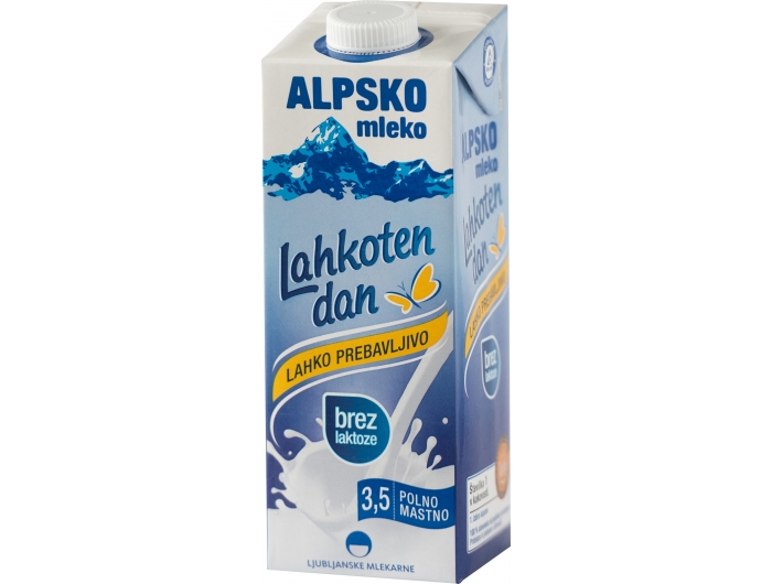 Alpsko mleko bez laktoze s 3,5% mliječne masti lako je probavljivo i omogućuje uživanje u mlijeku osobama s intolerancijom i osjetljivošću na laktozu (mliječni šećer).