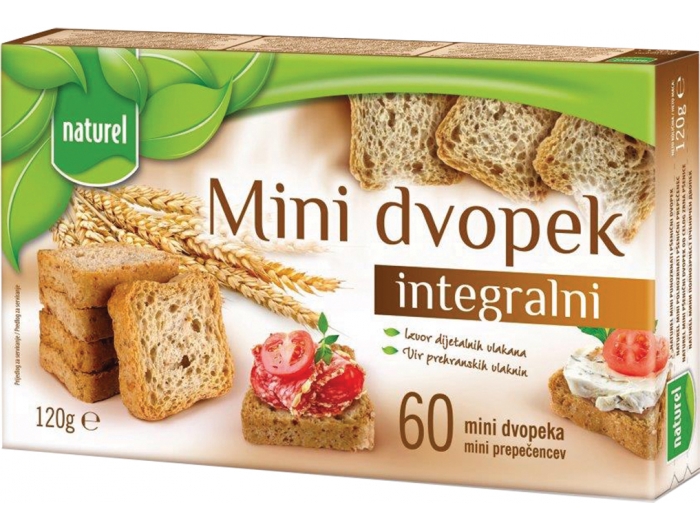 Mini dvopek dobiven iz cjelovitog pšeničnog brašna sa sjemenkama sezama, hrskave teksture i zlatnosmeđe boje.