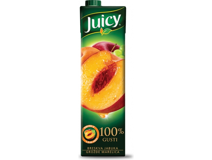 Sok od više vrsta voća djelomično od koncentriranih voćnih sokova i koncentriranih voćnih kaša. Izvor vitamina C. Pasteriziran.