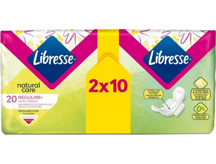 Libresse® Natural Care Normal ulošci posebno su nježni i pahuljasti s površinskim slojem mekanim poput pamuka. Sadrže prirodne ekstrakte aloe vere i kamilice koji su poznati po svom antibakterijskom djelovanju. Zahvaljujući SecureFit™ tehnologiji s različito oblikovanom prednjom i stražnjom stranom posebno su osmišljeni kako bi se prilagodili svakom obliku tijela. Libresse Natural Care Normal ulošci brzo upijaju i nježno štite. Ne sadrže dodane parfeme.