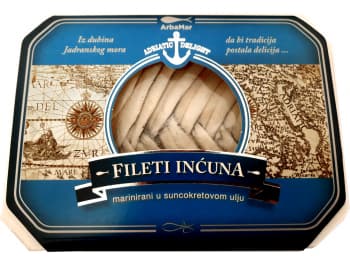 Fileti inćuna. Marinirani u suncokretovom ulju. Riba iz Jadranskog mora.