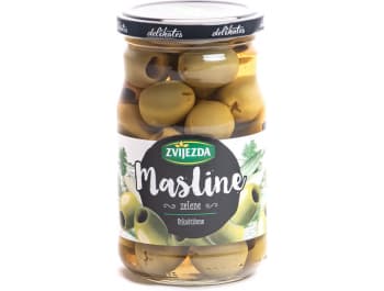 Zelene odgorčene stolne masline u slanoj vodi. Pasterizirane.