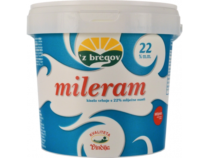 Kiselo vrhnje mileram nezamjenjiv je sastojak kod pripreme domaćih specijaliteta. Kremaste je strukture i daje vrhunski okus raznim umacima, juhama, ali i slasticama. Pakiranje od 900 g s 22% mliječne masti.