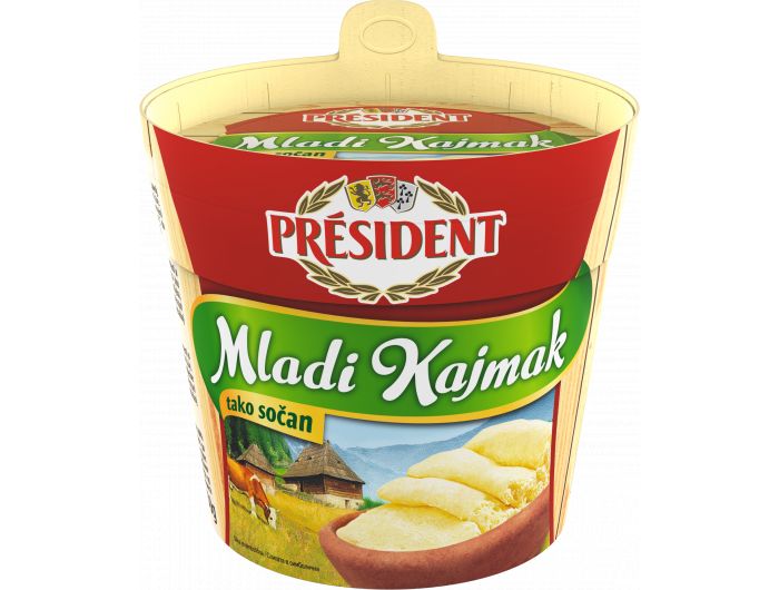 Mliječni namaz 50% mliječne masti · min. 80% mliječne masti u suhoj tvari. Zlatno žute boje, lagano slankast, meke i lako mazive teksture koja se topi u ustima President Mladi kajmak izvrsno prija uz mesna pečenja, krumpirove pole ili pak najjednostavnije, obilno namazn na komad svježeg kruha, dok meso s roštilja uz President Mladi kajmak postaje još sočnije i ukusnije.