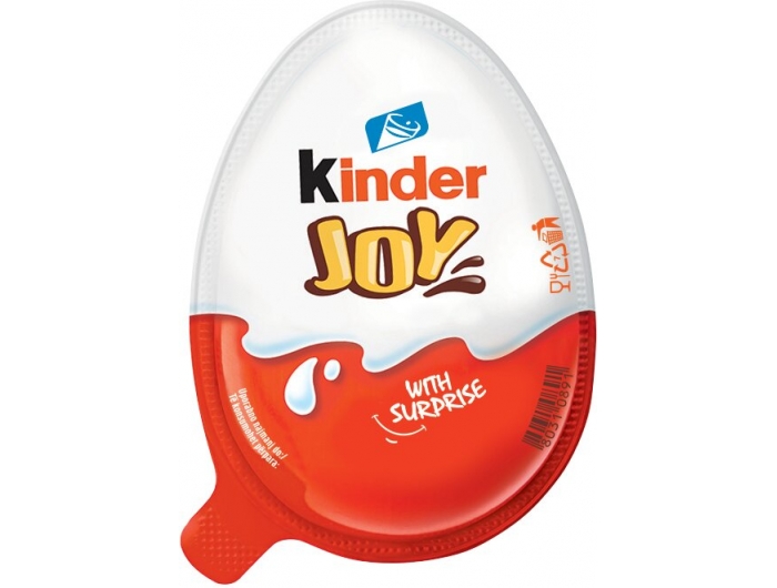 Mliječna čokolada Kinder joy. Hrskavi kakao specijalitet s mliječnom kremom i kremom od kakao-lješnjaka te igračka iznenađenja.