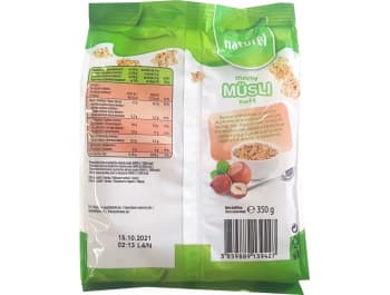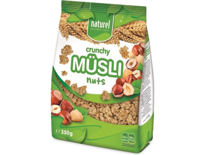 Hrskavi musli s lješnjakom. Naturel hrskavi musli su ukusna mješavina blago tostiranih pahuljica na bazi zobi. Bogat su izvor hranjivih vlakana koji nam pomažu u održavanju razine energije tijekom cijelog dana. Idealne kao doručak ili međuobrok.