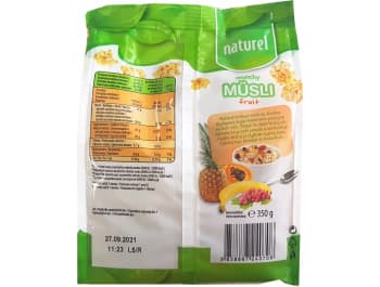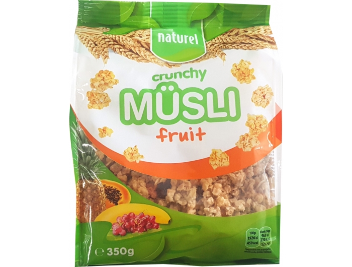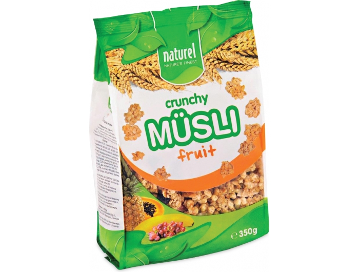 Naturel Granola hrskavi müsli su vrlo ukusna mješavina blago tostiranih zobenih pahuljica i ekstrudiranih žitarica iz cjelovitog zrna pšenice. Bogat su izvor hranjivih vlakana, a u kombinaciji s bobičastim voćem, šipkom, čokoladom ili kikirikijem, idealan su prijedlog za doručak ili međuobrok.