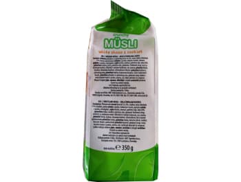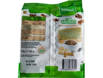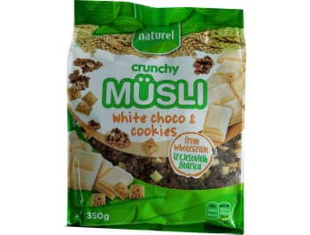 ZOBENE pahuljice iz cjelovitog zrna 35,3%, šećer, bijela čokolada 11% (šećer, punomasno MLIJEKO u prahu, kakaov maslac, obrano MLIJEKO u prahu, emulgator: SOJIN lecitin, aroma), palmino ulje, keksi 8% (PŠENIČNO brašno iz cjelovitog zrna, PŠENIČNO brašno, kukuruzna krupica, šećer, kukuruzni škrob), PŠENIČNE pahuljice iz cjelovitog zrna, glukozni sirup, kakao s reduciranom masti u prahu, aroma, sol, biljni ekstrakt (iz origana).