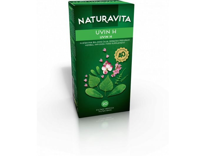Naturavita uvin H čaj© najbolji je saveznik u borbi protiv upala mokraćnih kanala. U prilog njegovoj djelotvornosti govori činjenica da se proizvodi i konzumira već više od 40 godina. Sastoji se od čajne mješavine s listom medvjetke, zelenog vrijeska, listom breze, korijenom zečjeg trna, zelene preslice i kukuruznom svilom koje imaju izuzetno blagotvoran učinak na mokraćne kanale i izbacivanje bakterija iz organizma. Naturavita uvin H čaj© djeluje jednako efikasno na sve dobne skupine te je zbog toga neizostavan dio obiteljske medicine.