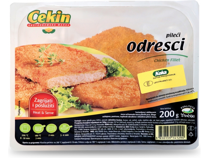 Meso pilećih prsa (58%), panada (PŠENIČNO brašno, kvasac, sol, začini), voda, repičino ulje, sol, bijeli papar, regulatori kiselosti (difosfati, trifosfati), bijeli papar.