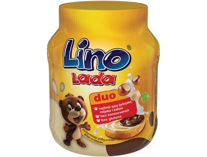 Slatki namaz. Ovaj ukusan i neodoljiv spoj lješnjaka i kakaa lako možemo pohvaliti kako pruža dvostruki užitak na jednoj kriški kruha jer smeđa i bijela Lino Lada najbolje su kad su zajedno.