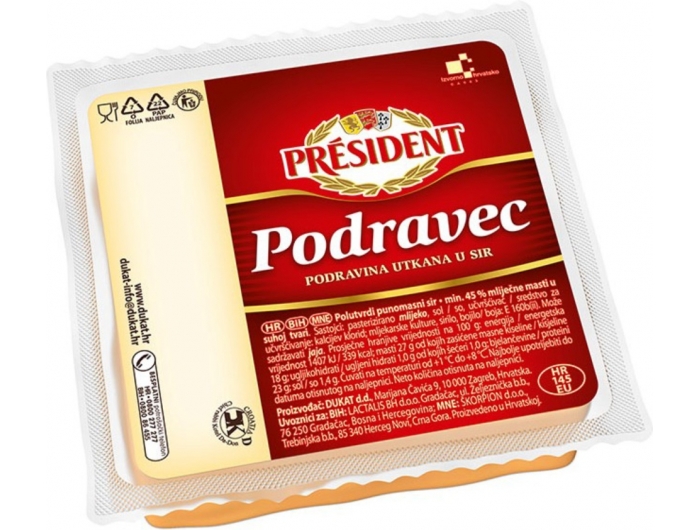 President Podravec sasvim je sigurno Sirelin najpopularniji polutvrdi masni sir od kravljeg mlijeka. Izrazito je žute boje, blago je kiselkastog okusa, a kako zrenje odmiče, dobiva slatkastu notu. Mlad ili zreo, nezaobilazan je dio dobrog sendviča i gurmanskih zalogaja, a zahvaljujući odličnoj topivosti često se koristi u kulinarstvu u pripremi umaka, pizza, zapečenih i gratiniranih jela. President Podravec nosi oznaku Izvorno hrvatsko od 2005. godine.