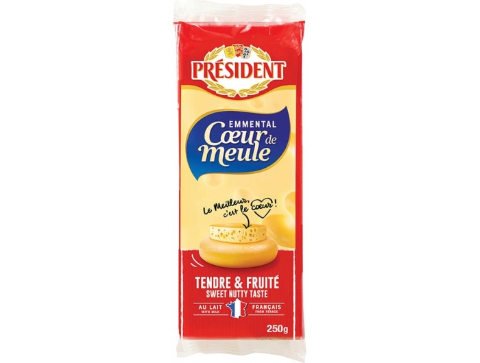 Za President Emmental biraju se i režu dijelovi sira s najboljom aromom - iz same sredine koluta, odnosno „srca“sira.