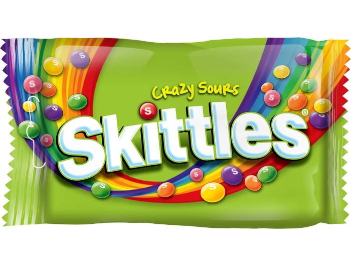 Skittles Crazy Sours žvakaće su dražeje s kiselkastim voćnim okusom okružene hrskavim šećernim slojem.