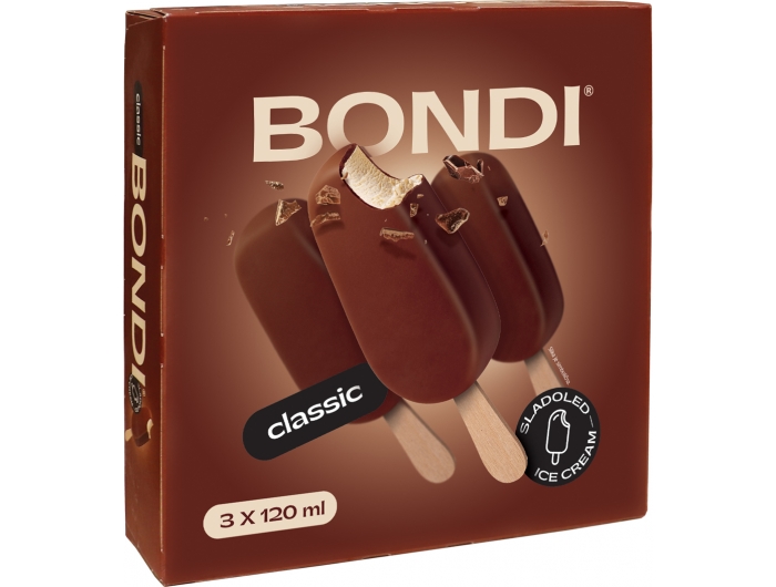 sladoled okusa vanilije 72% (rekontruirano obrano mlijeko, šećer, kokosovo ulje, glukozni sirup, sirutka u prahu, obrano mlijeko u prahu, emulgator: mono- i digliceridi masnih kiselina; stabilizatori: brašno sjemenke rogača, guar guma; arome), mliječna čokolada 28% ( šećer, kakaov maslac, kakaova mast, obrano mlijeko u prahu, bezvodna mliječna mast, sirutka u prahu, koosovo ulje, emulgatori: lecitini (iz suncokreta), poliglicerol poliricinoleat:ekstrakt vanilije 0,5%).