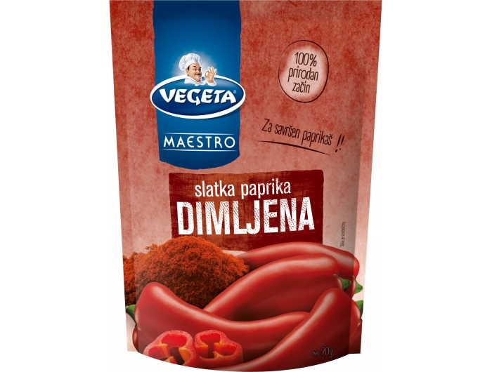 Dimljena paprika slatka i delikatesna dobivena dimljenjem na prirodnom dimu hrastovog drveta i ne sadrži dodatnih aroma.