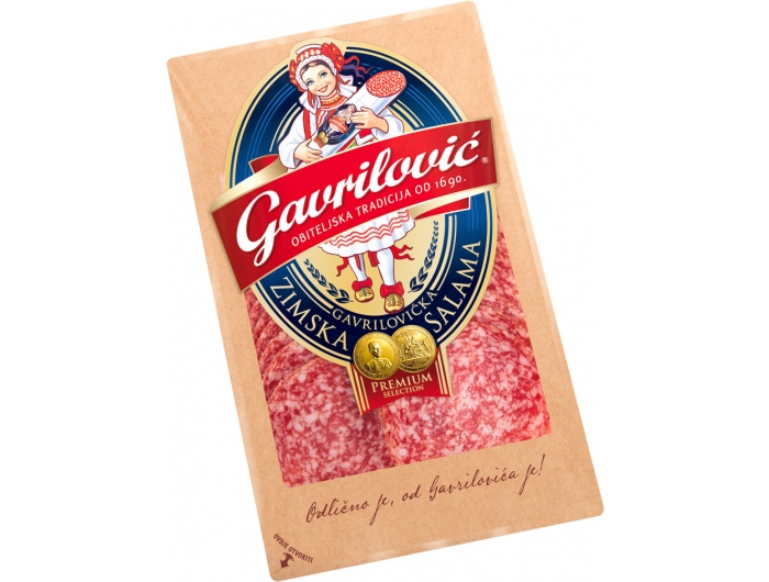 Zimska salama pripremljena je po izvornoj recepturi starih Gavrilovićevih majstora od najkvalitetnijih komada svinjskog mesa. Jedina originalna Gavrilović Zimska salama od 1883. godine. Hladno dimljena na bukovom drvu, sazrijeva 3 mjeseca pri čemu se razvija čuvena plemenita plijesan. Višak plemenite plijesni ručno se četka nakon sazrijevanja.