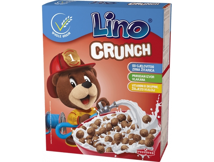 Za zdrav i ukusan doručak potrebne su vam samo ove žitne kuglice koje sadrže 61% žitarica čokoladnog okusa. Obogaćene su s čak 8 vitamina, željezom i kalcijem. Jednostavna priprema s mlijekom Lino Crunch čini uravnoteženim i hranjivim doručkom za sve uzraste.