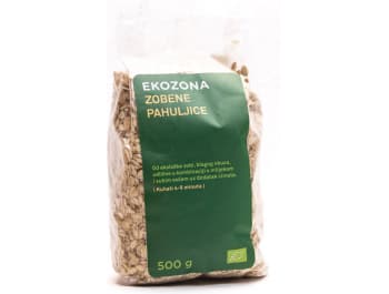 Ekozona Zobene pahuljice, mlinski proizvod. Gotov proizvod od žitarica, žitne pahuljice. 100% ekoproizvod. Od ekološke zobi, blagog okusa, odlične u kombinaciji s mlijekom i suhim voćem uz dodatak cimeta.